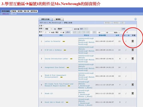 3.學習互動區à編號1的附件是Ms.Newbrough的師資簡介