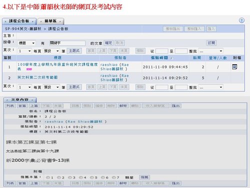 4.以下是中師 蕭韻秋老師的網頁及考試內容